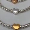 Gorgeous Sterling Silver beaded bracelet with heart bead detail. This bracelet is made using 3mm Sterling Silver beads threaded one to the highest quality beading wire with a heart bead at the centre. The bracelet has a Sterling Silver slider clasp attached making it easy to wear and adjust size accordingly.
